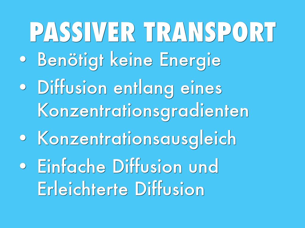 Passiv oder Aktiv (Energie aus Protonen-und Ionengradienten)gegen den Konzentrationsgradienten