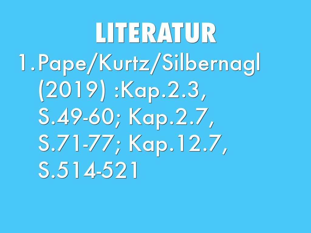 Pape/Kurtz/Silbernagl (2019) :Kap.2.3, S.49-60; Kap.2.7, S.71-77; Kap.12.7, S.514-521