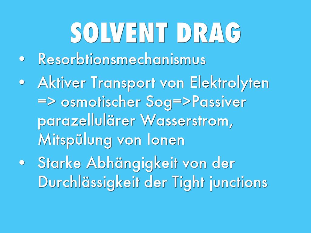 Werden beim parazellulären Transport gelöste Stoffe mitgerissen spricht man vom solvent Drag, Richtung hängt vom elektrochem. Gradienten ab