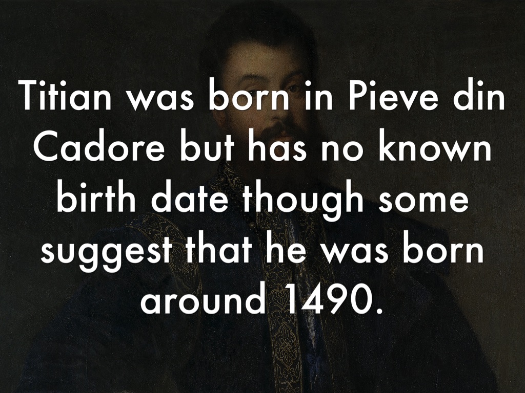 Titian was born in Pieve din Cadore but has no known birth date though some suggest that he was born around 1490.
