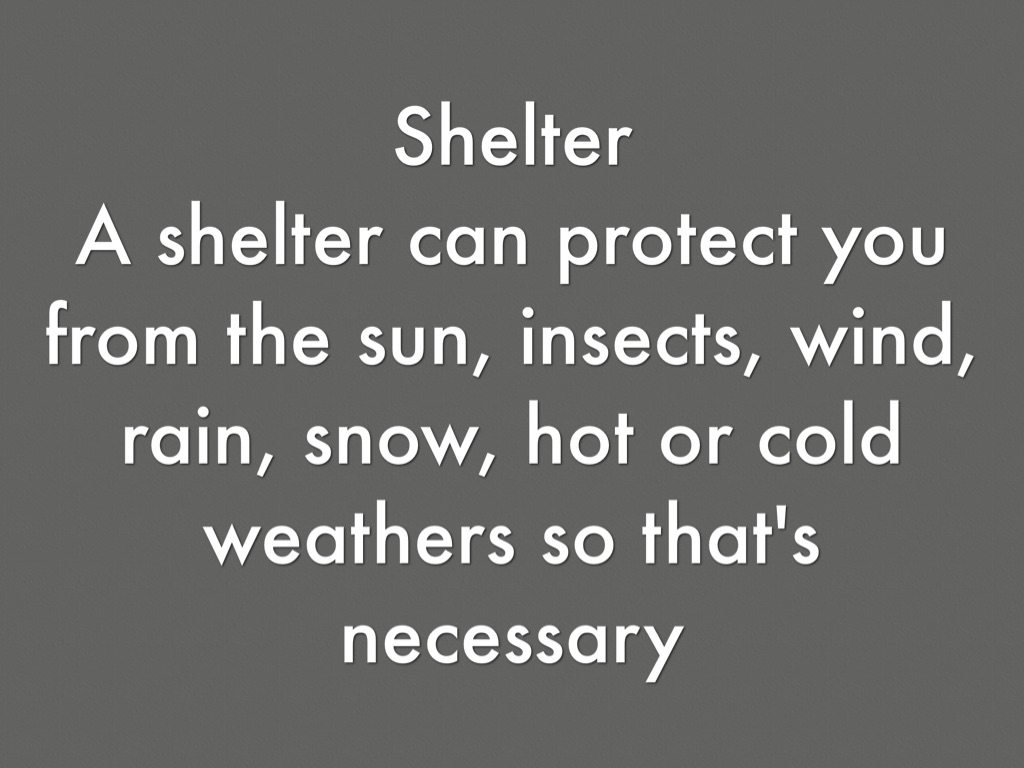 A shelter can protect you from the sun, insects, wind, rain, snow, hot or cold weathers so that's necessary