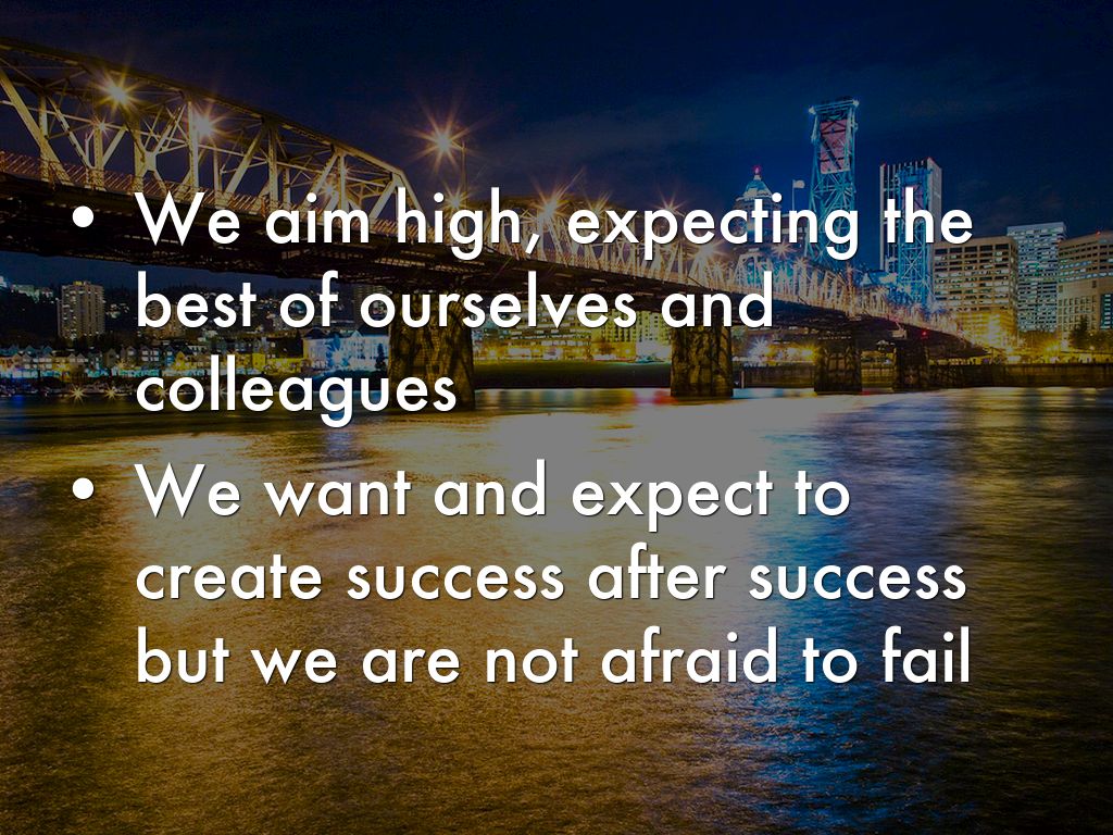 • We aim high, expecting the best of ourselves and colleagues