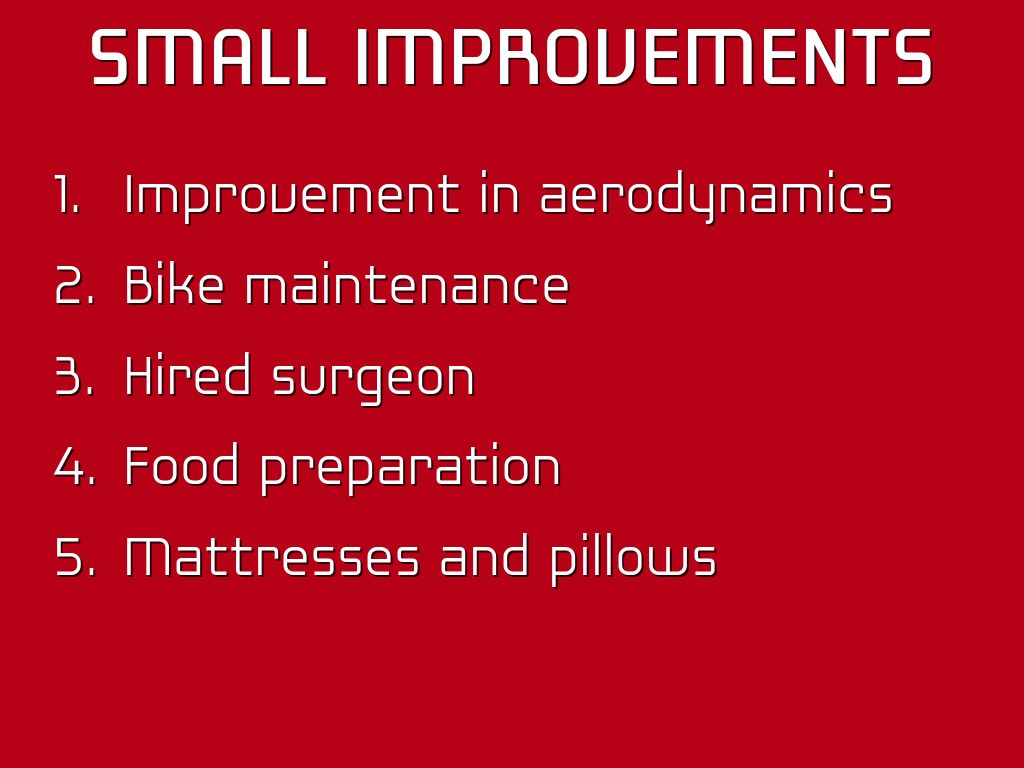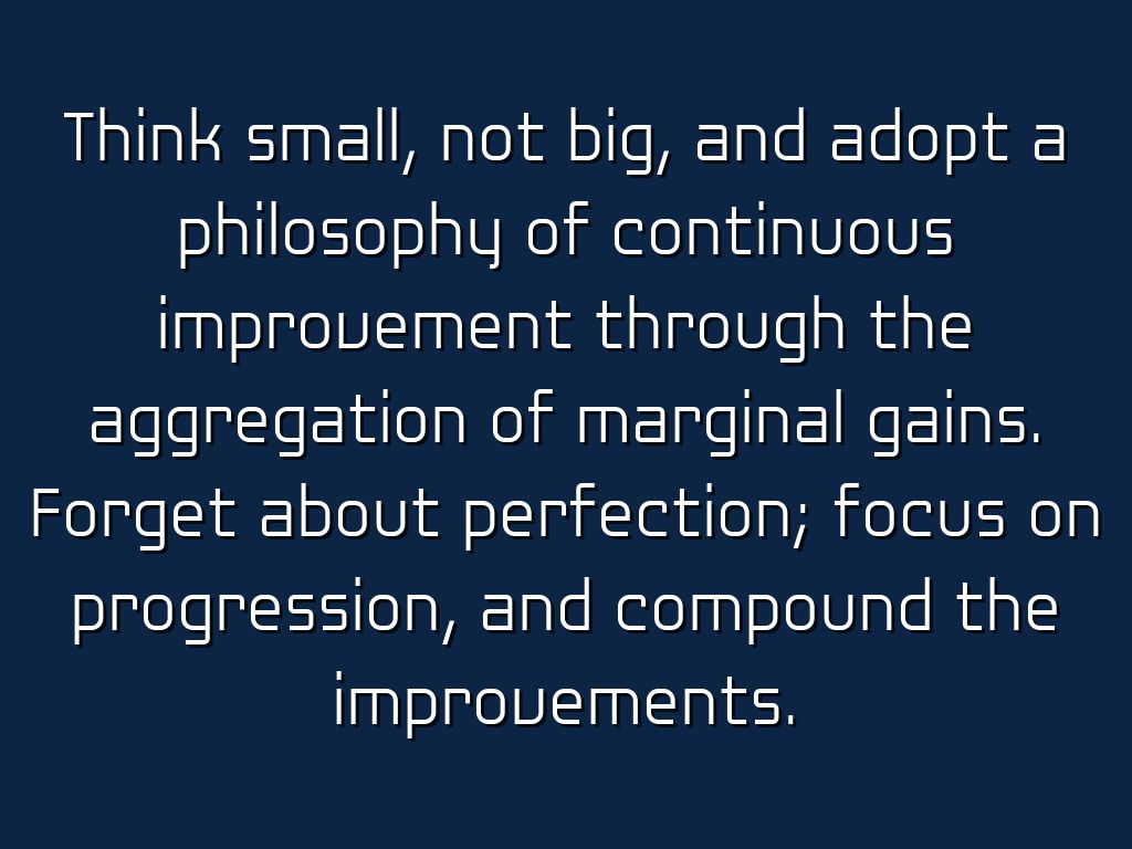 Think small, not big, and adopt a philosophy of continuous improvement through the aggregation of marginal gains.