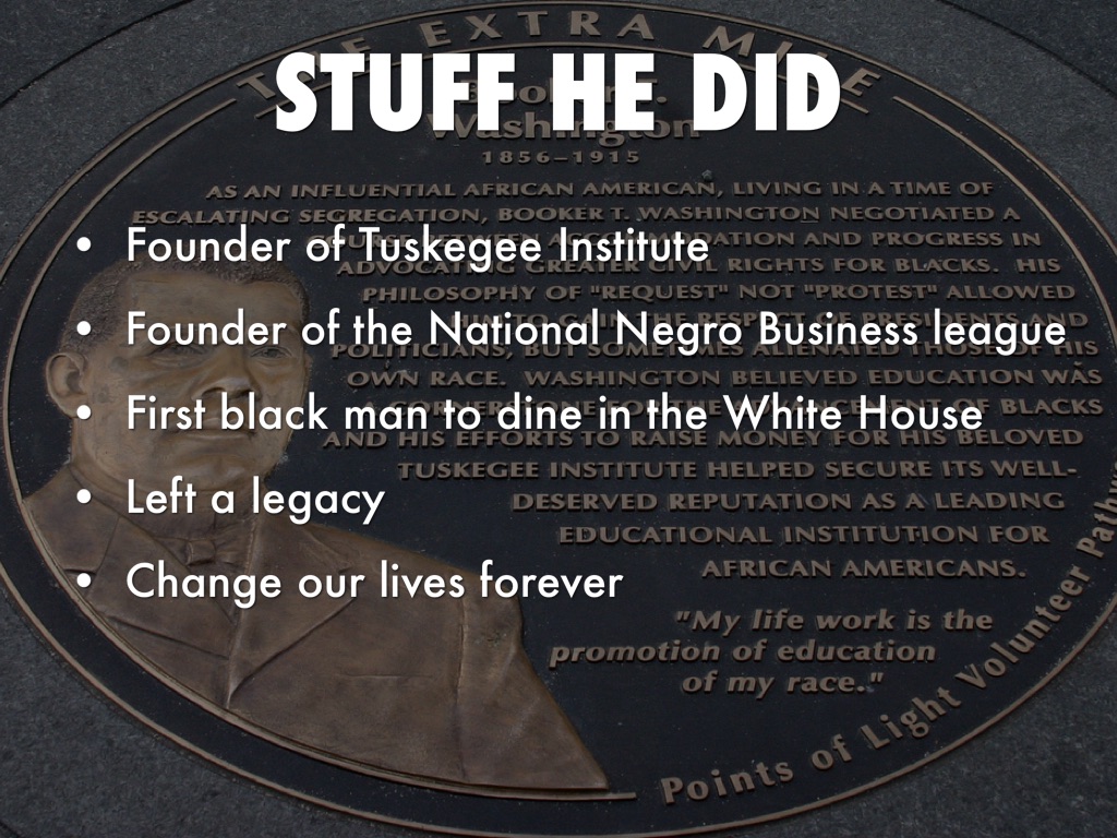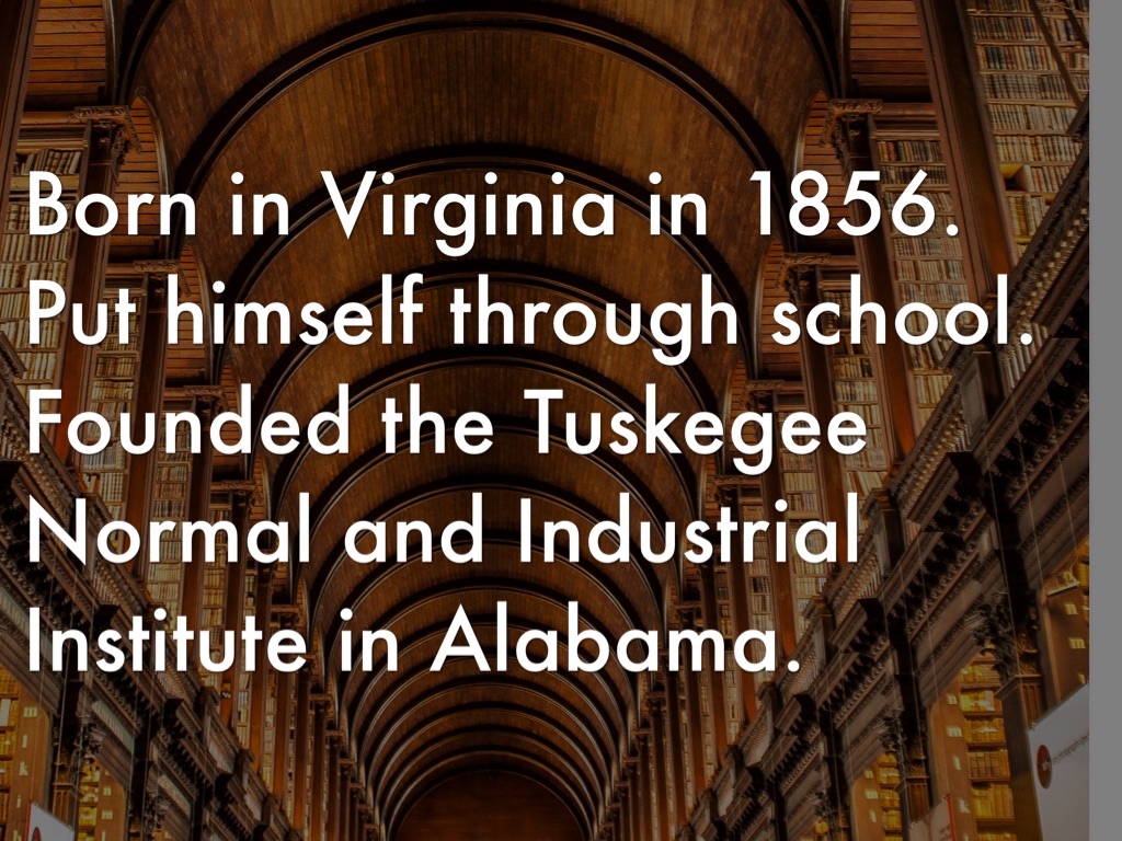 Founded the Tuskegee Normal and Industrial Institute in Alabama.