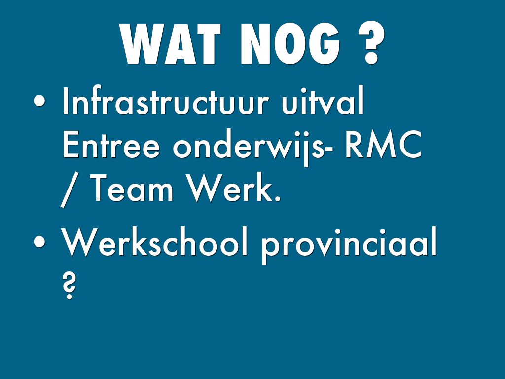 Infrastructuur uitval Entree onderwijs- RMC / Team Werk.
