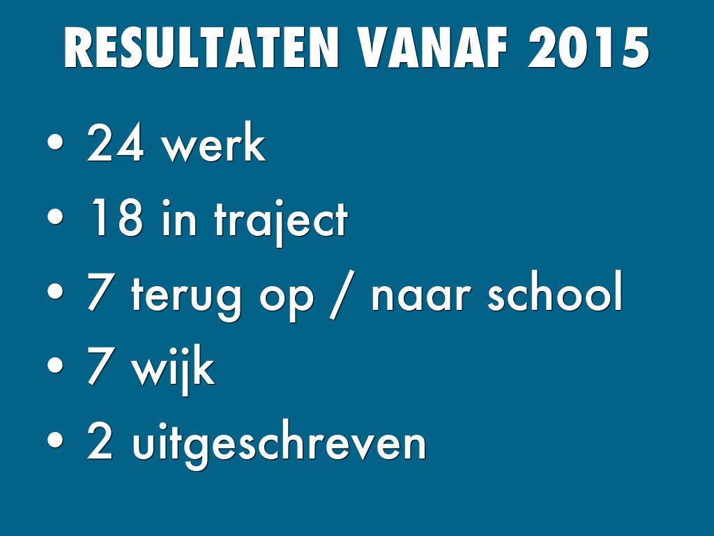 RESULTATEN VANAF 2015
