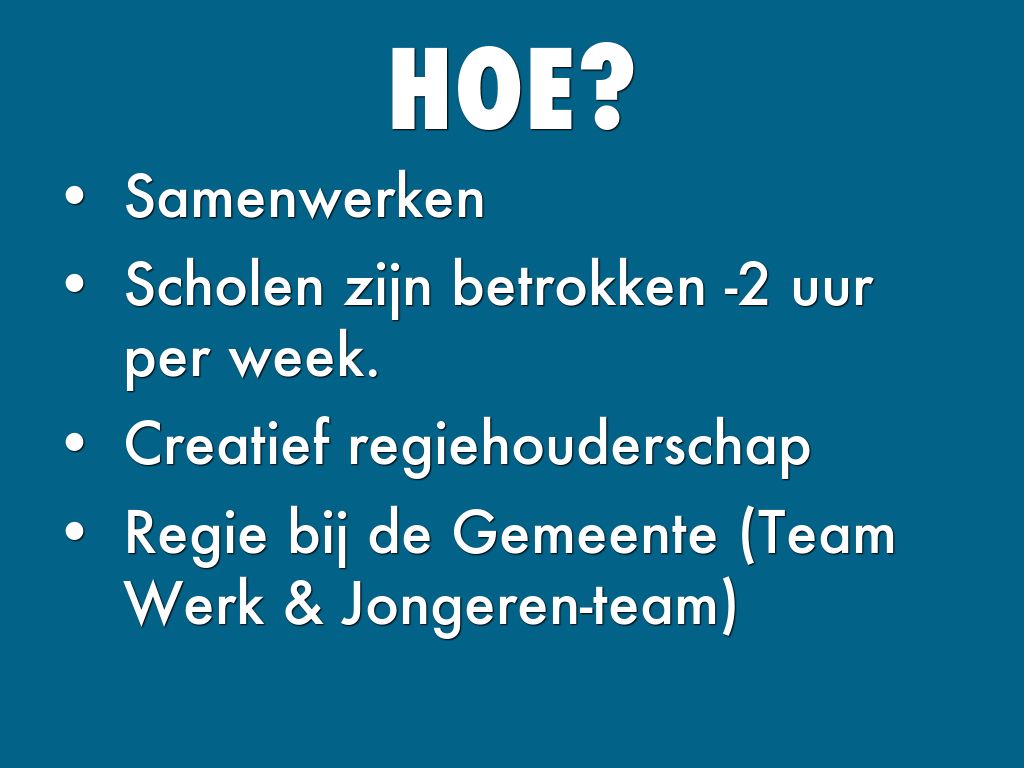 Scholen zijn betrokken -2 uur per week.