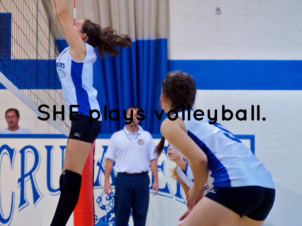 SHE plays volleyball.