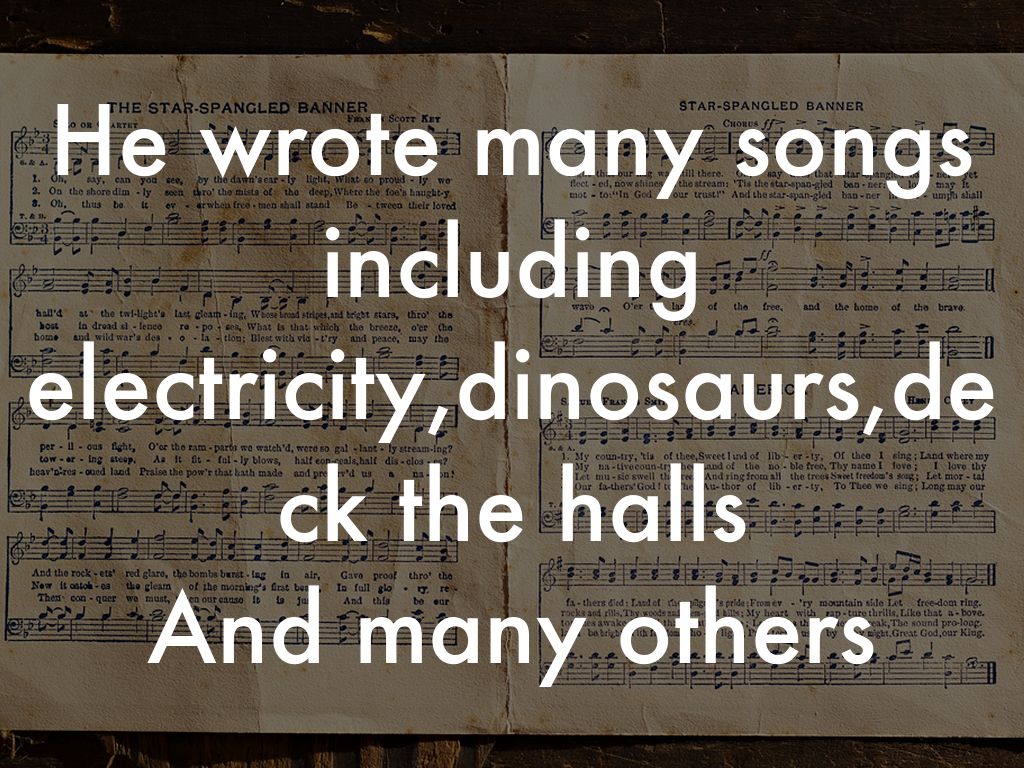 He wrote many songs including electricity,dinosaurs,deck the halls
