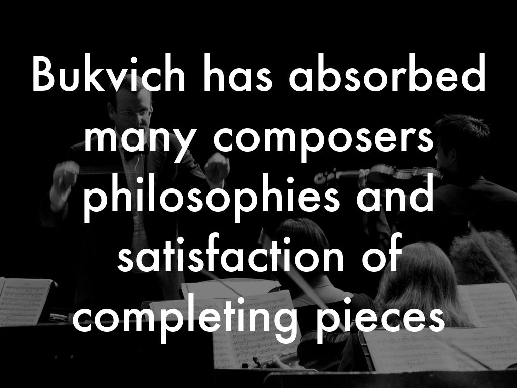 Bukvich has absorbed many composers philosophies and satisfaction of completing pieces