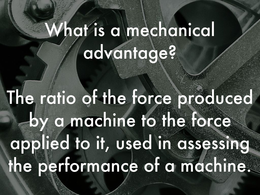 The ratio of the force produced by a machine to the force applied to it, used in assessing the performance of a machine.