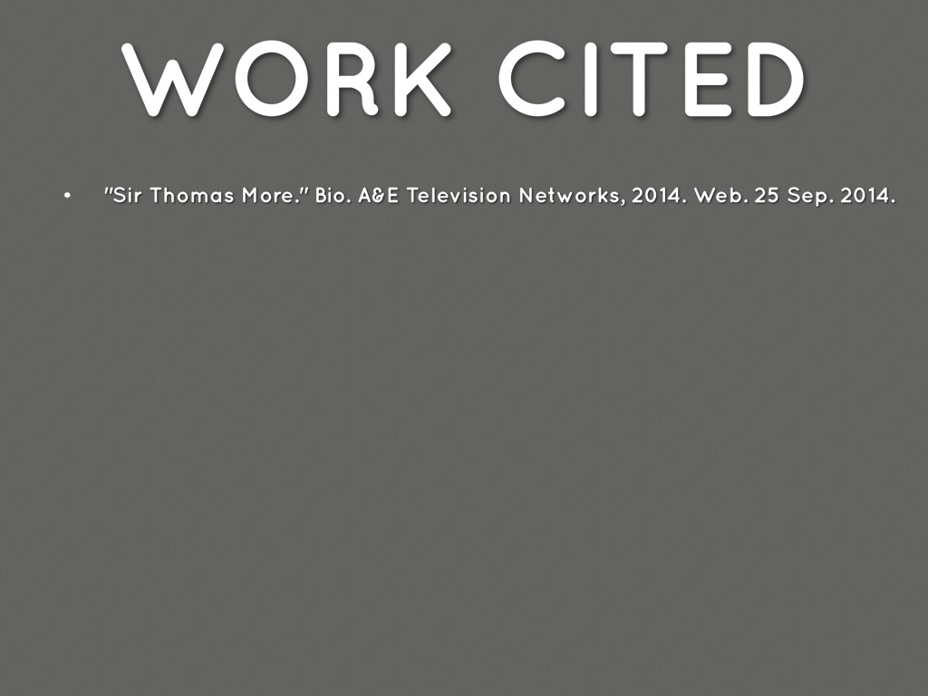 • "Sir Thomas More." Bio. A&E Television Networks, 2014. Web. 25 Sep. 2014.