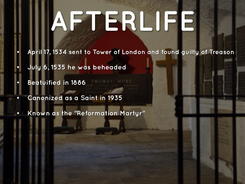 • April 17, 1534 sent to Tower of London and found guilty of Treason