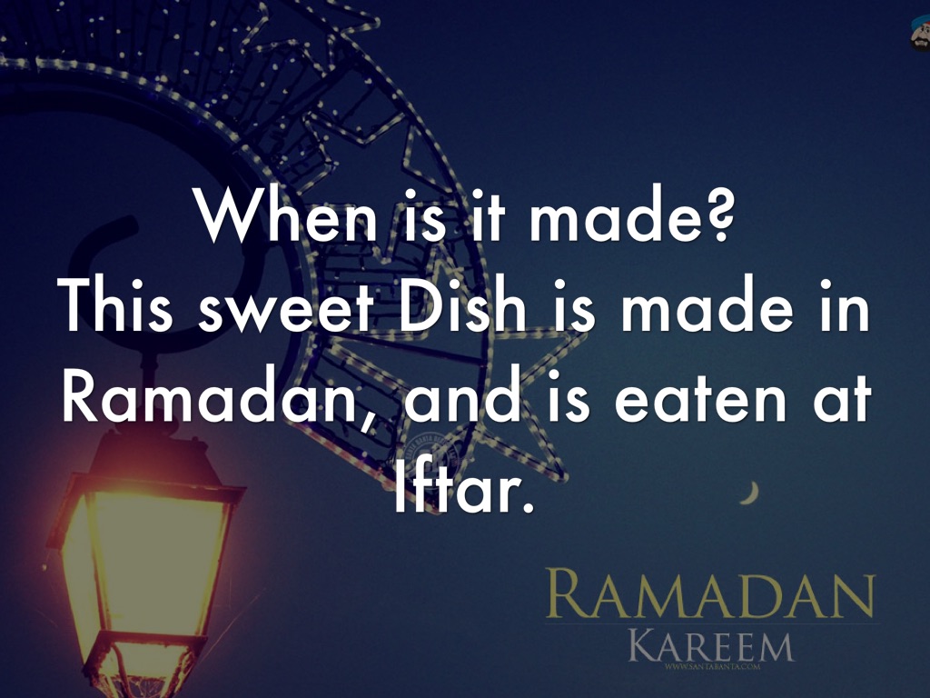 This sweet Dish is made in Ramadan, and is eaten at Iftar.