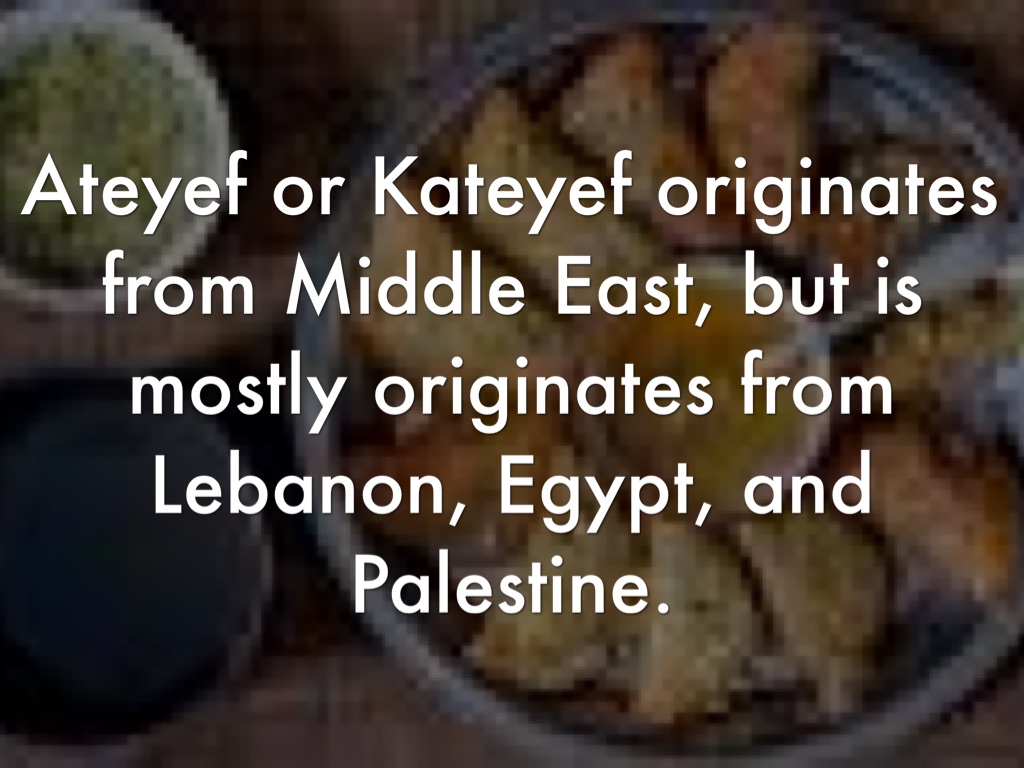 Ateyef or Kateyef originates from Middle East, but is mostly originates from Lebanon, Egypt, and Palestine.