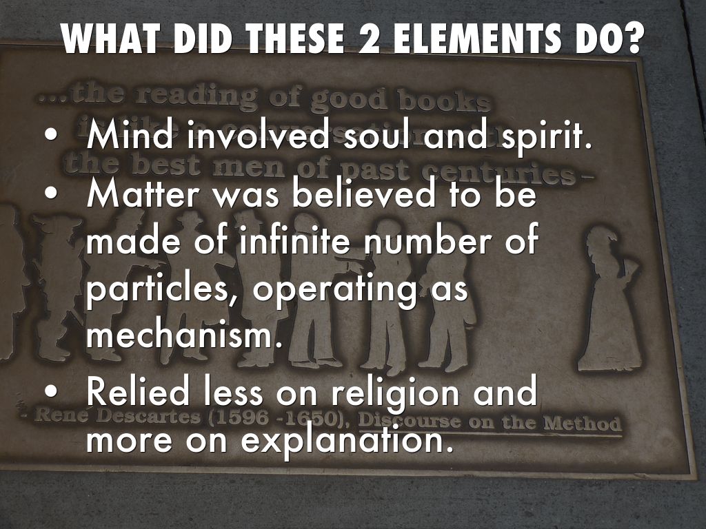 Matter was believed to be made of infinite number of particles, operating as mechanism.
