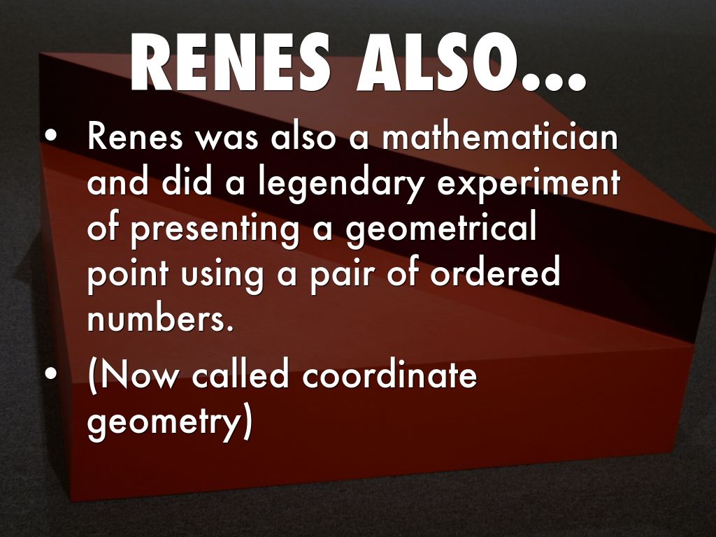 Renes was also a mathematician and did a legendary experiment of presenting a geometrical point using a pair of ordered numbers.