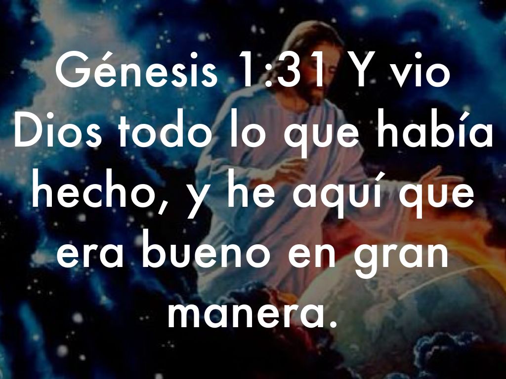 Génesis 1:31 Y vio Dios todo lo que había hecho, y he aquí que era bueno en gran manera.