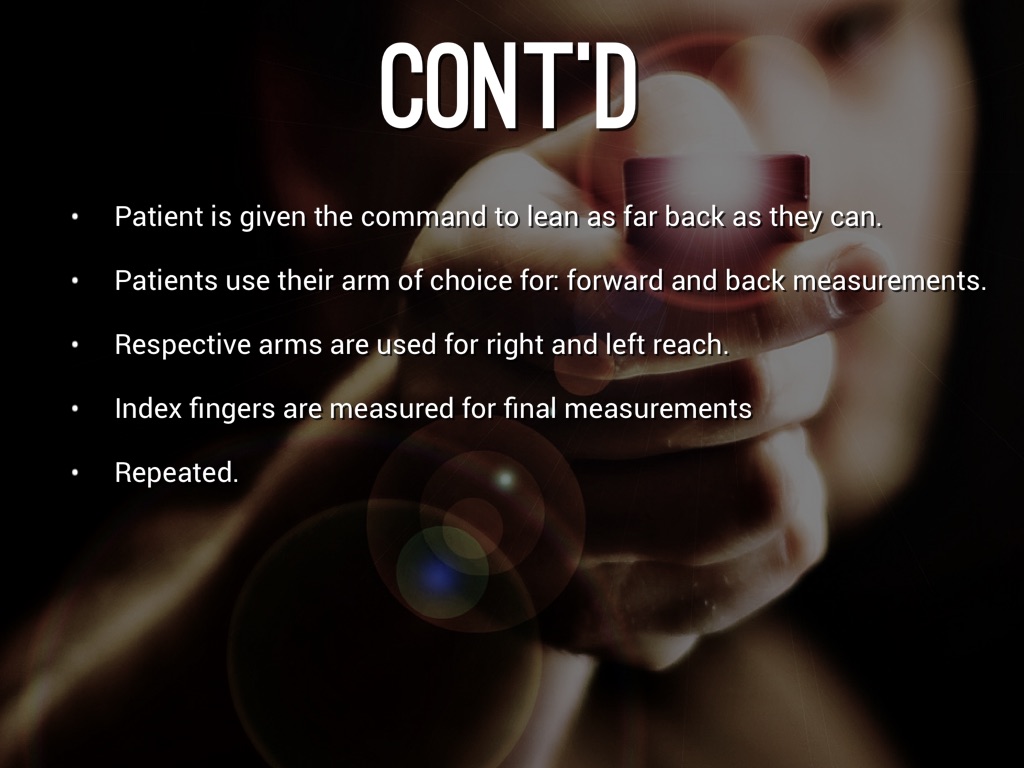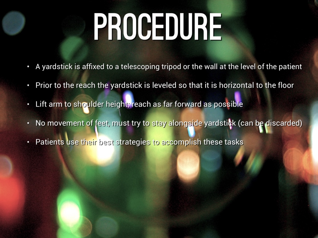 Prior to the reach the yardstick is leveled so that it is horizontal to the floor