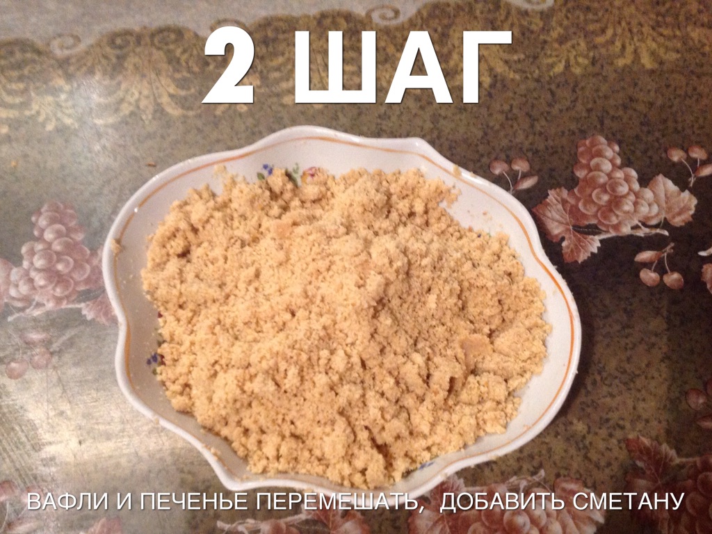 ВАФЛИ И ПЕЧЕНЬЕ ПЕРЕМЕШАТЬ, ДОБАВИТЬ СМЕТАНУ