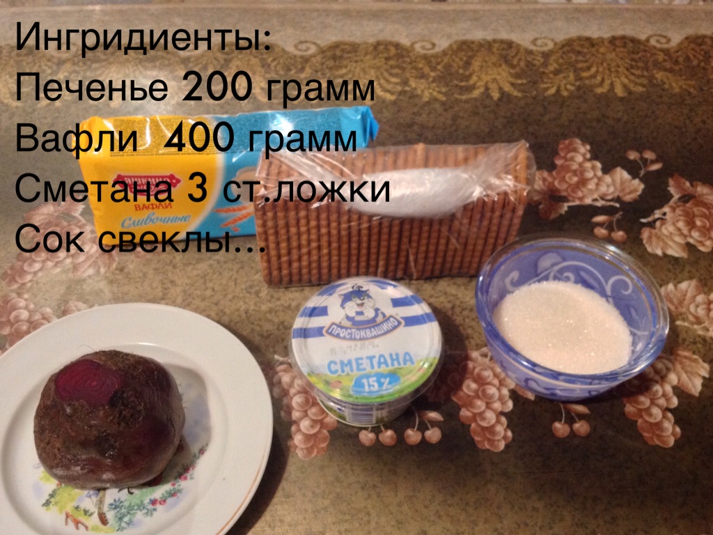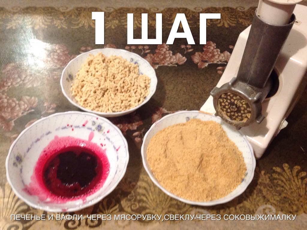 ПЕЧЕНЬЕ И ВАФЛИ- ЧЕРЕЗ МЯСОРУБКУ,СВЕКЛУ-ЧЕРЕЗ СОКОВЫЖИМАЛКУ