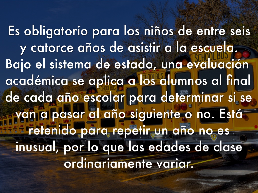 Es obligatorio para los niños de entre seis y catorce años de asistir a la escuela. Bajo el sistema de estado, una evaluación académica se aplica a los alumnos al final de cada año escolar para determinar si se van a pasar al año siguiente o no. Está retenido para repetir un año no es inusual, por lo que las edades de clase ordinariamente variar.