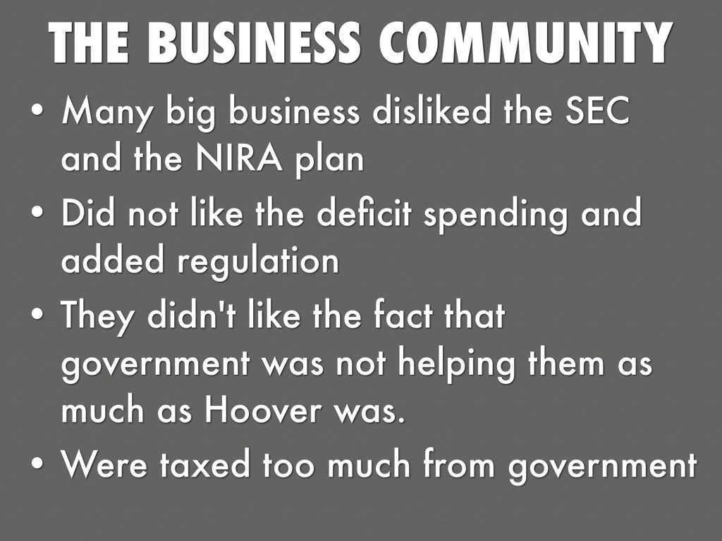 They didn't like the fact that government was not helping them as much as Hoover was.