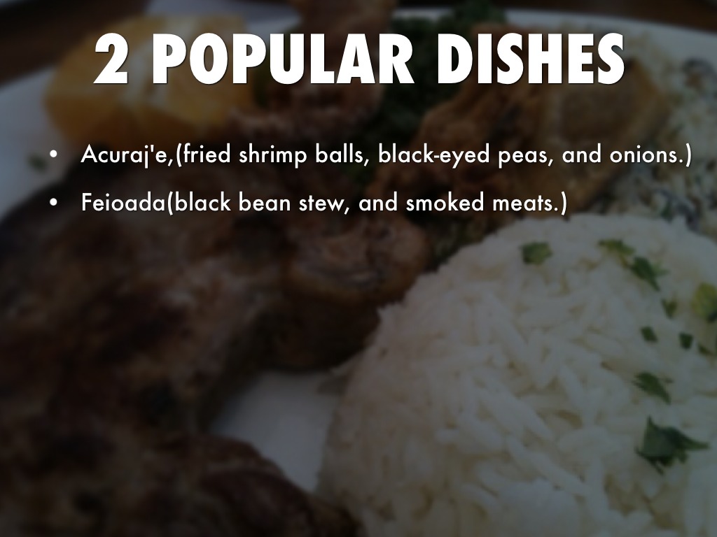 Acuraj'e,(fried shrimp balls, black-eyed peas, and onions.)