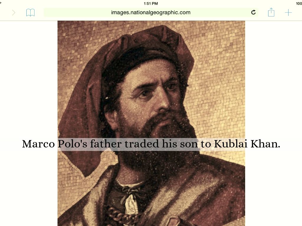 Marco Polo's father traded his son to Kublai Khan.