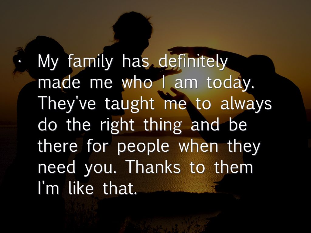 My family has definitely made me who I am today. They've taught me to always do the right thing and be there for people when they need you. Thanks to them I'm like that.