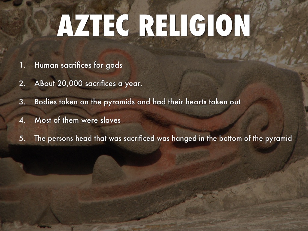 In 1325 the Aztec religion and tribe started with different culture and belief.They migrated down south to lake texcoco were a leader saw an eagle standing in a cactus ,it was a sign for a new homeland.