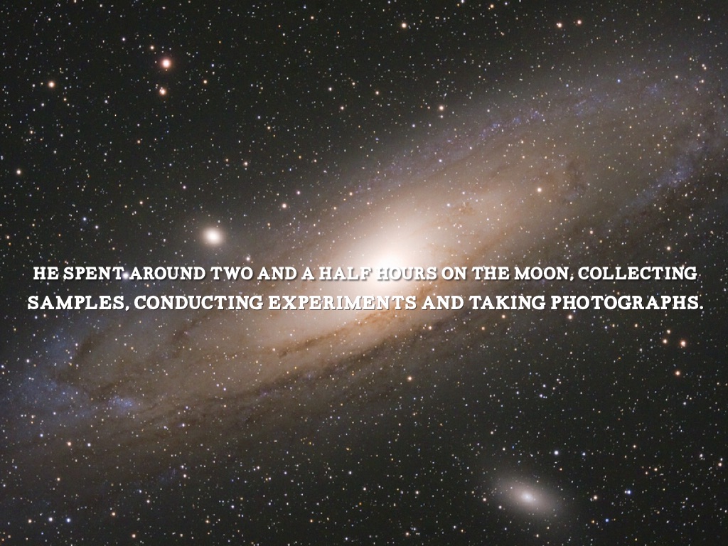 HE SPENT AROUND TWO AND A HALF HOURS ON THE MOON, COLLECTING