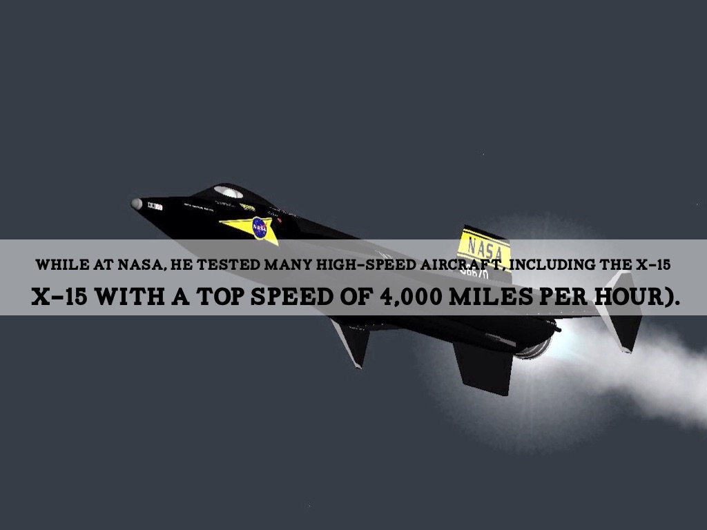 WHILE AT NASA, HE TESTED MANY HIGH-SPEED AIRCRAFT, INCLUDING THE X-15
