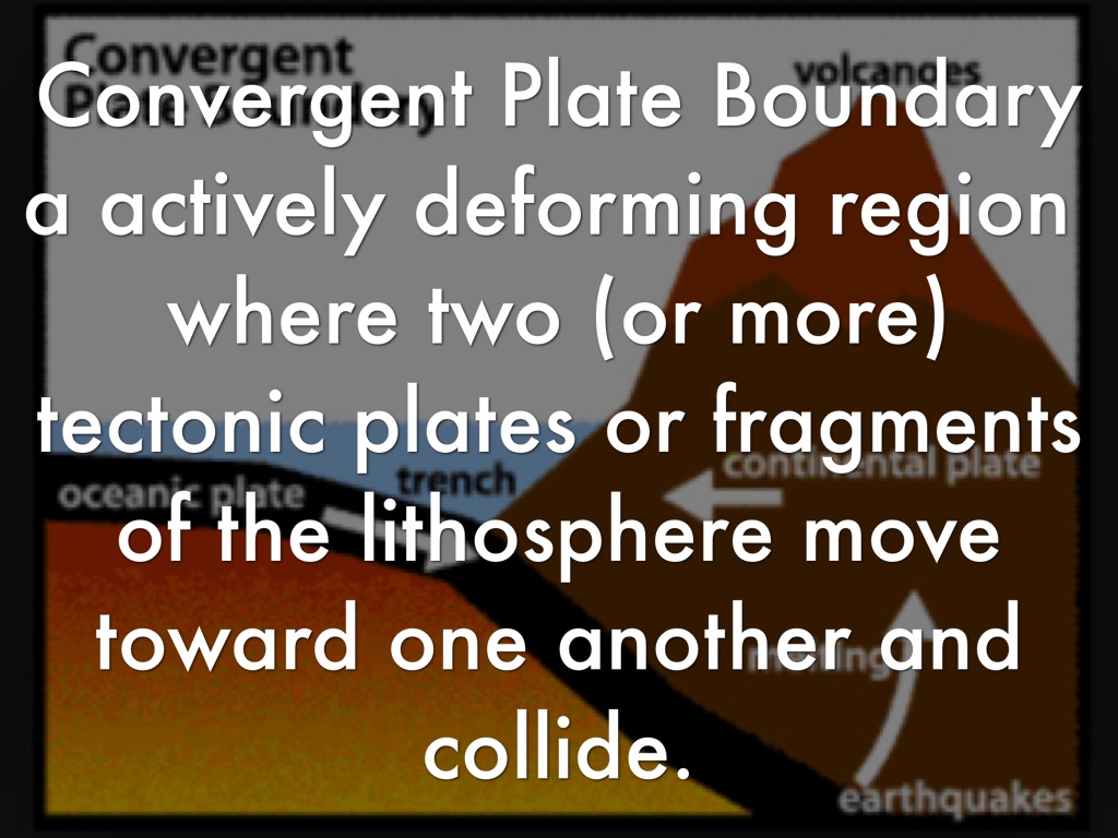 a actively deforming region where two (or more) tectonic plates or fragments of the lithosphere move toward one another and collide.