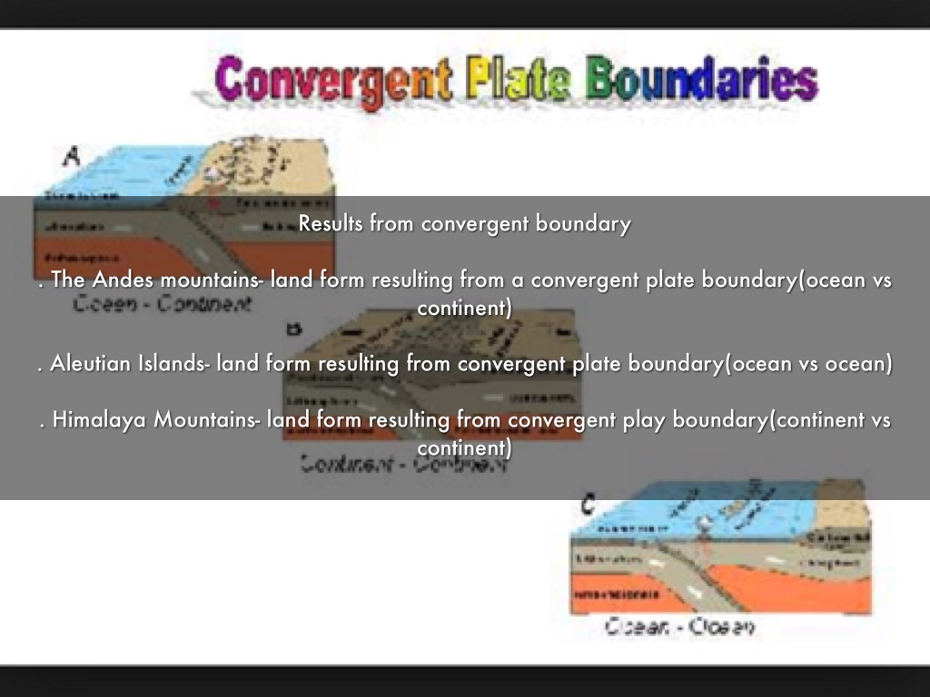 . The Andes mountains- land form resulting from a convergent plate boundary(ocean vs continent)