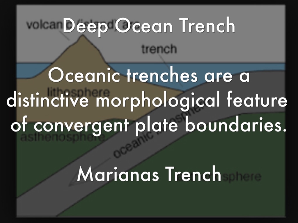 Oceanic trenches are a distinctive morphological feature of convergent plate boundaries.