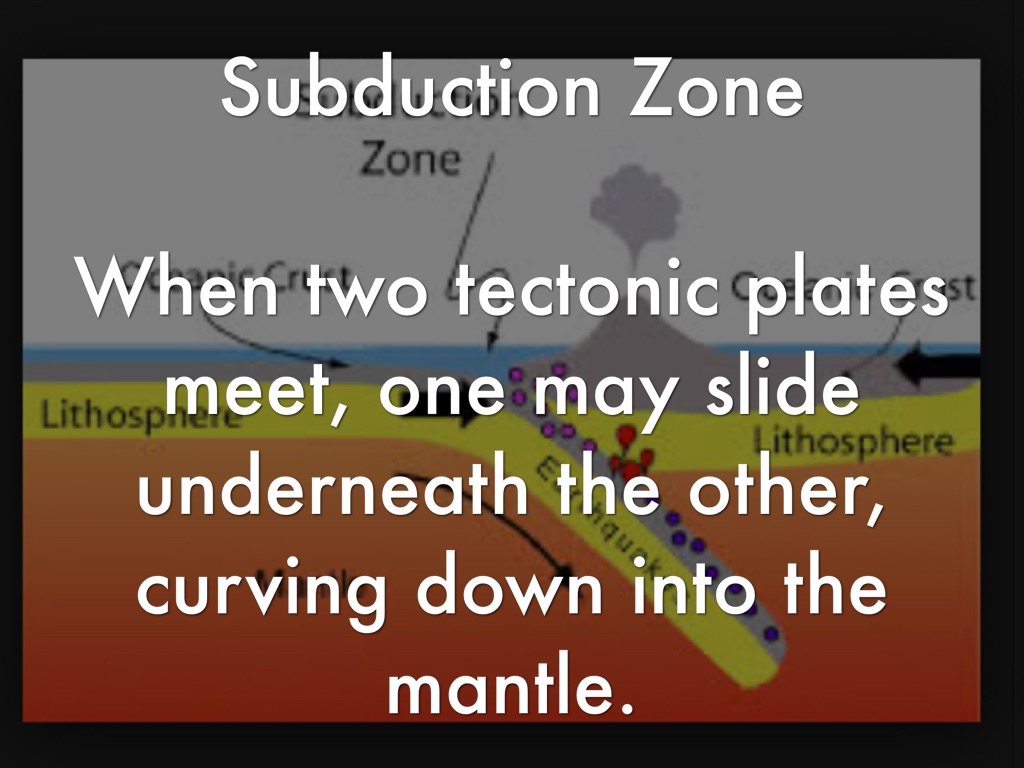 When two tectonic plates meet, one may slide underneath the other, curving down into the mantle.