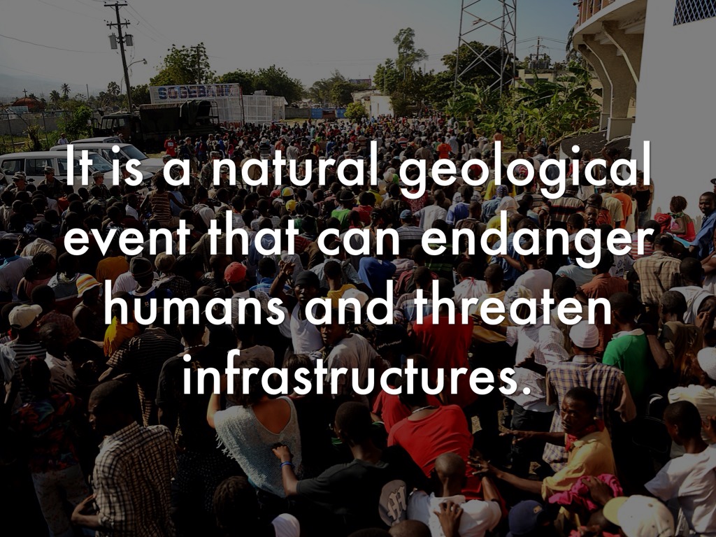- refers to the vibration of the Earth's surface caused by movement along a fault, by a volcanic eruption, or by manmade explosions.