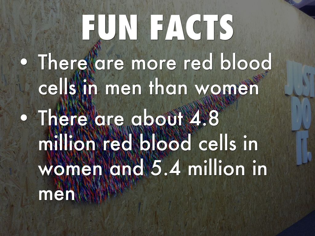 There are about 4.8 million red blood cells in women and 5.4 million in men