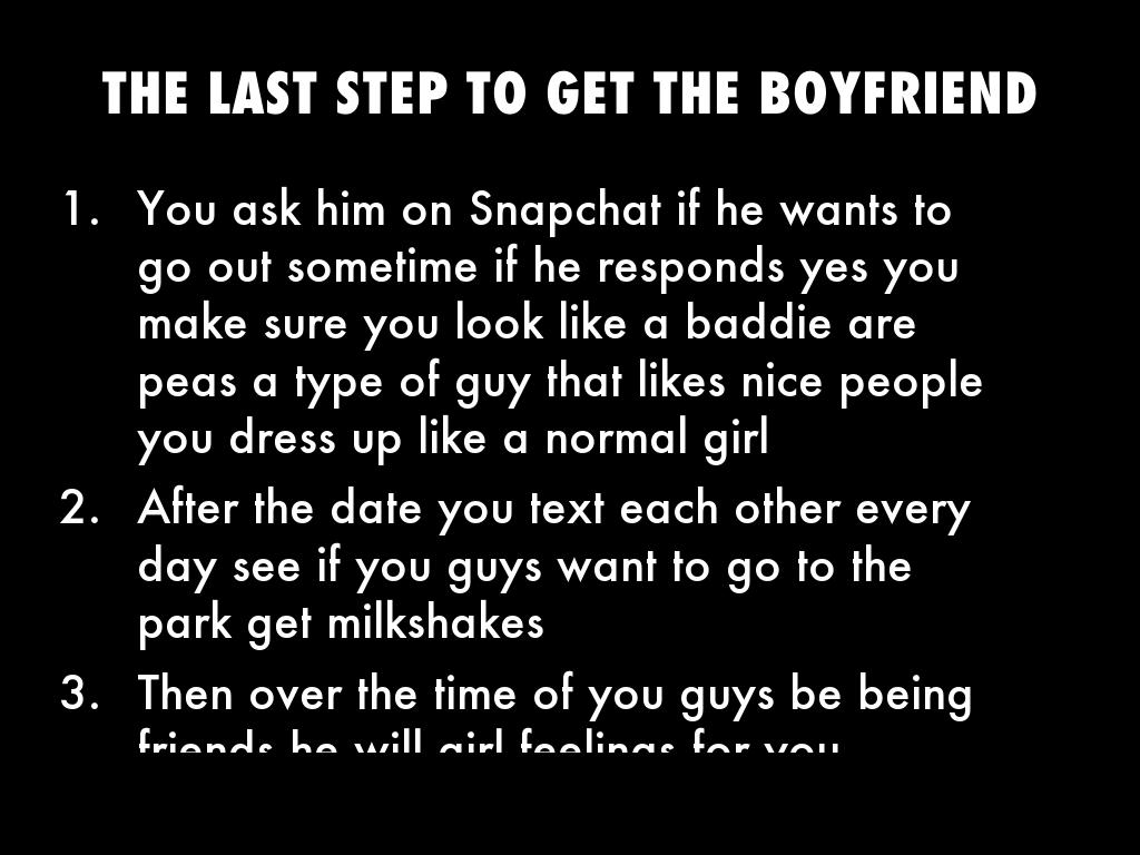 You ask him on Snapchat if he wants to go out sometime if he responds yes you make sure you look like a baddie are peas a type of guy that likes nice people you dress up like a normal girl