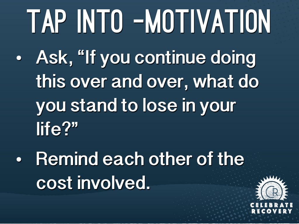 • Ask, “If you continue doing this over and over, what do you stand to lose in your life?”