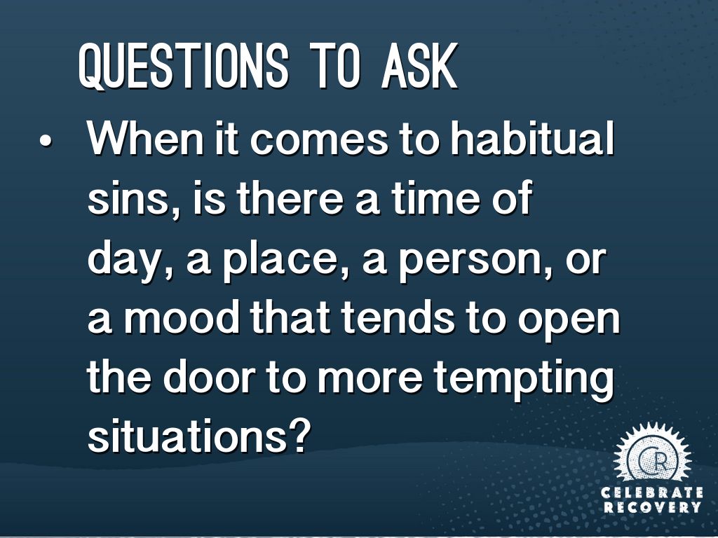 • When it comes to habitual sins, is there a time of day, a place, a person, or a mood that tends to open the door to more tempting situations?