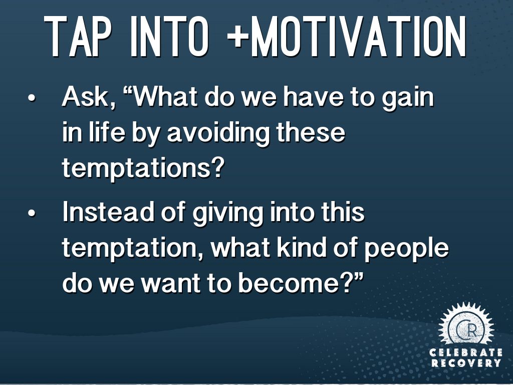 • Ask, “What do we have to gain in life by avoiding these temptations?