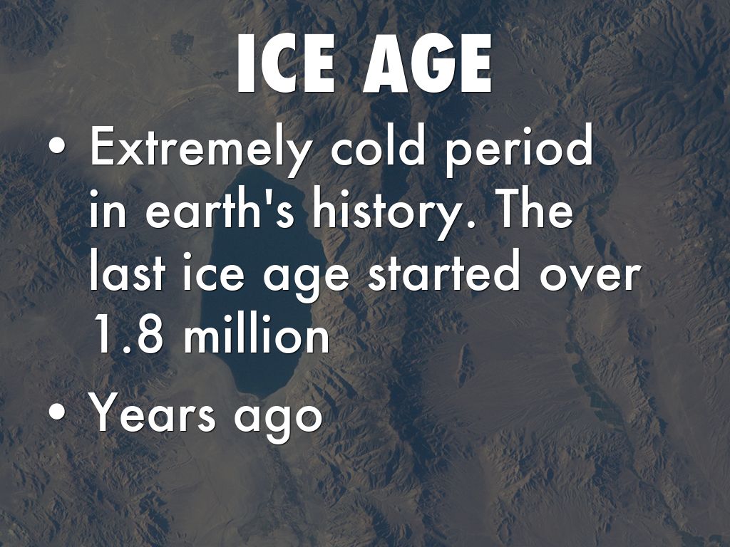 Extremely cold period in earth's history. The last ice age started over 1.8 million