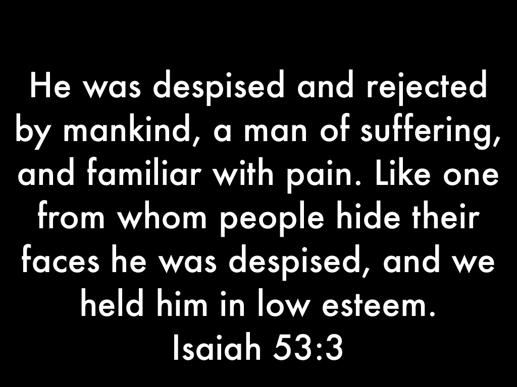 He was despised and rejected by mankind, a man of suffering, and familiar with pain. Like one from whom people hide their faces he was despised, and we held him in low esteem. Isaiah 53:3