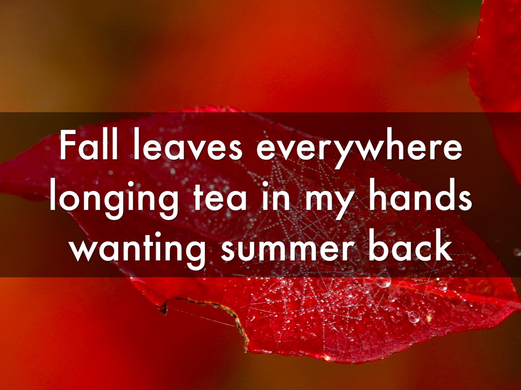Fall leaves everywhere longing tea in my hands wanting summer back
