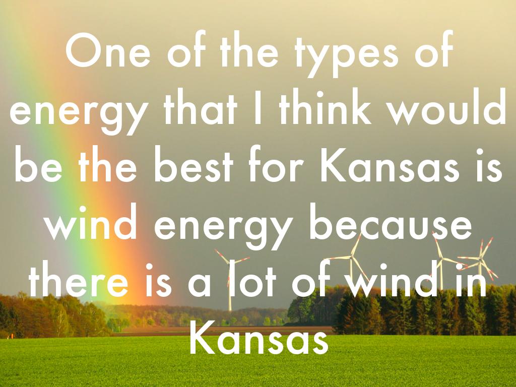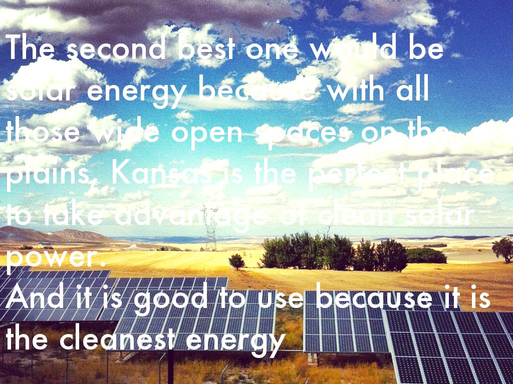 The second best one would be solar energy because with all those wide open spaces on the plains, Kansas is the perfect place to take advantage of clean solar power. And it is good to use because it is the cleanest energy