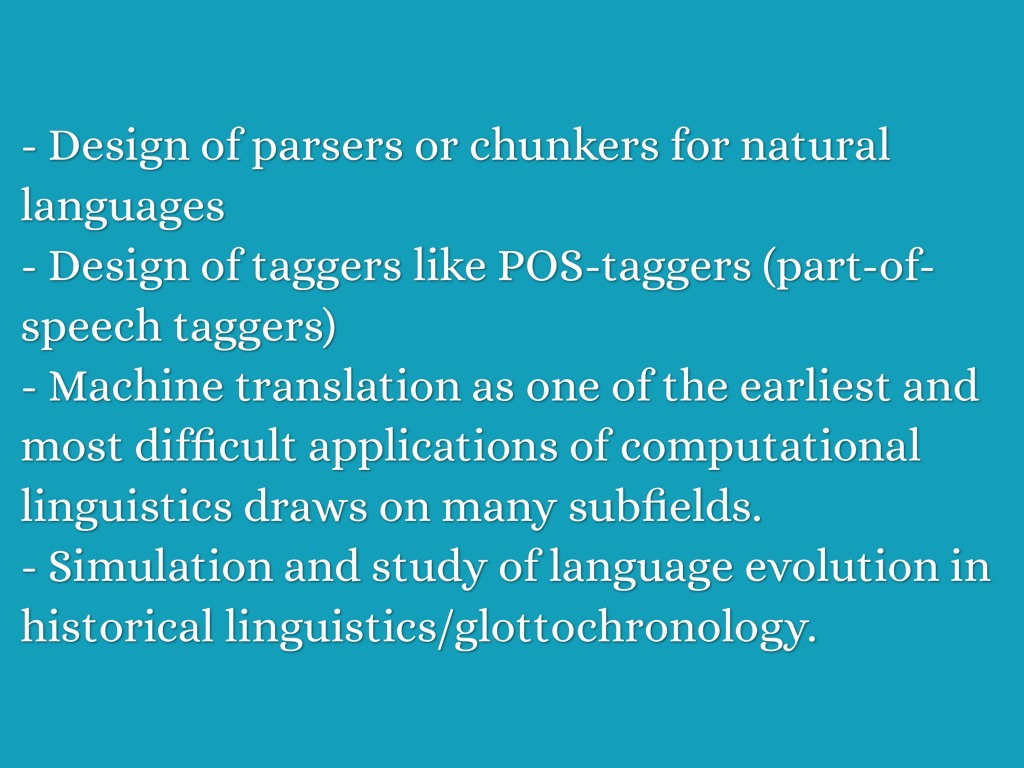- Design of taggers like POS-taggers (part-of-speech taggers)