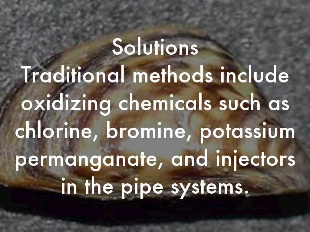 Traditional methods include oxidizing chemicals such as chlorine, bromine, potassium permanganate, and injectors in the pipe systems.