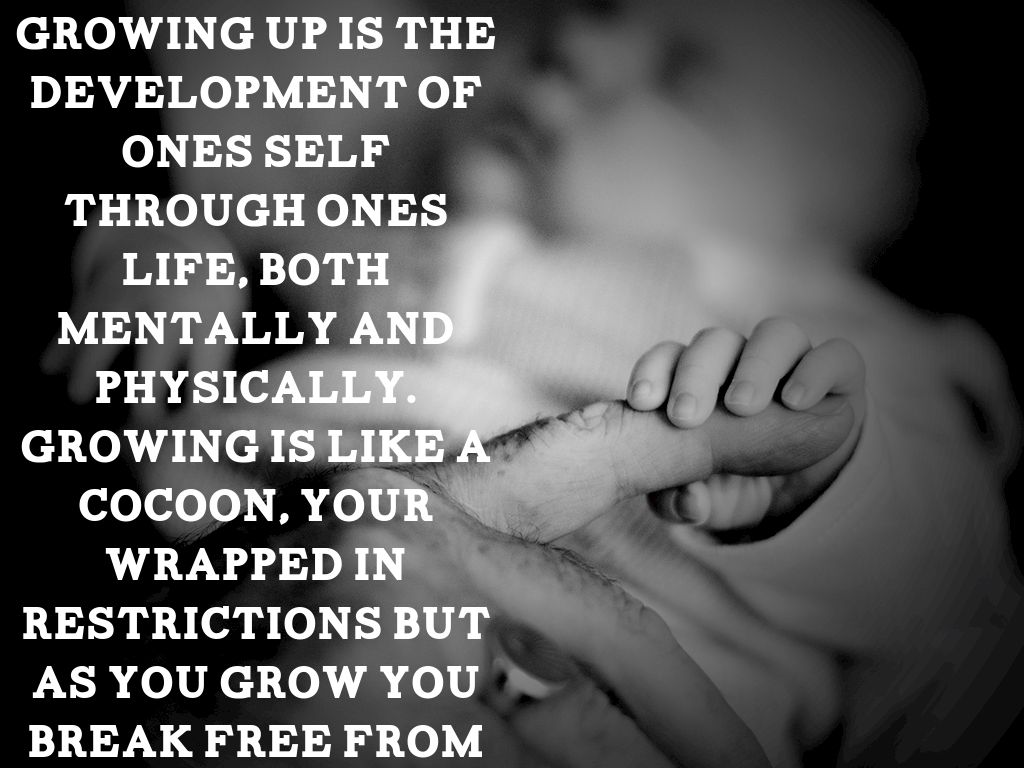 Growing is like a cocoon, your wrapped in restrictions but as you grow you break free from these bonds.